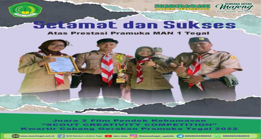 Minggu (13/10), bertempat di SMP N 2 Adiwerna, penganugerahan Scout Creativity Competition” di umumkan. Hadir pada pagi hari itu Kak Saidno Waka bidang Humas, Kak Nurkhakim Sekretaris Kwarcab Kab. Tegal di dampingi beberapa pengurus DKC. Pada penganugerahan tersebut Film Pendek Pramuka MAN 1 Tegal yang berjudul “Kacu” mendapat Juara 2 Film Pendek Lomba Kehumasan “Scout Creativity Competition”.