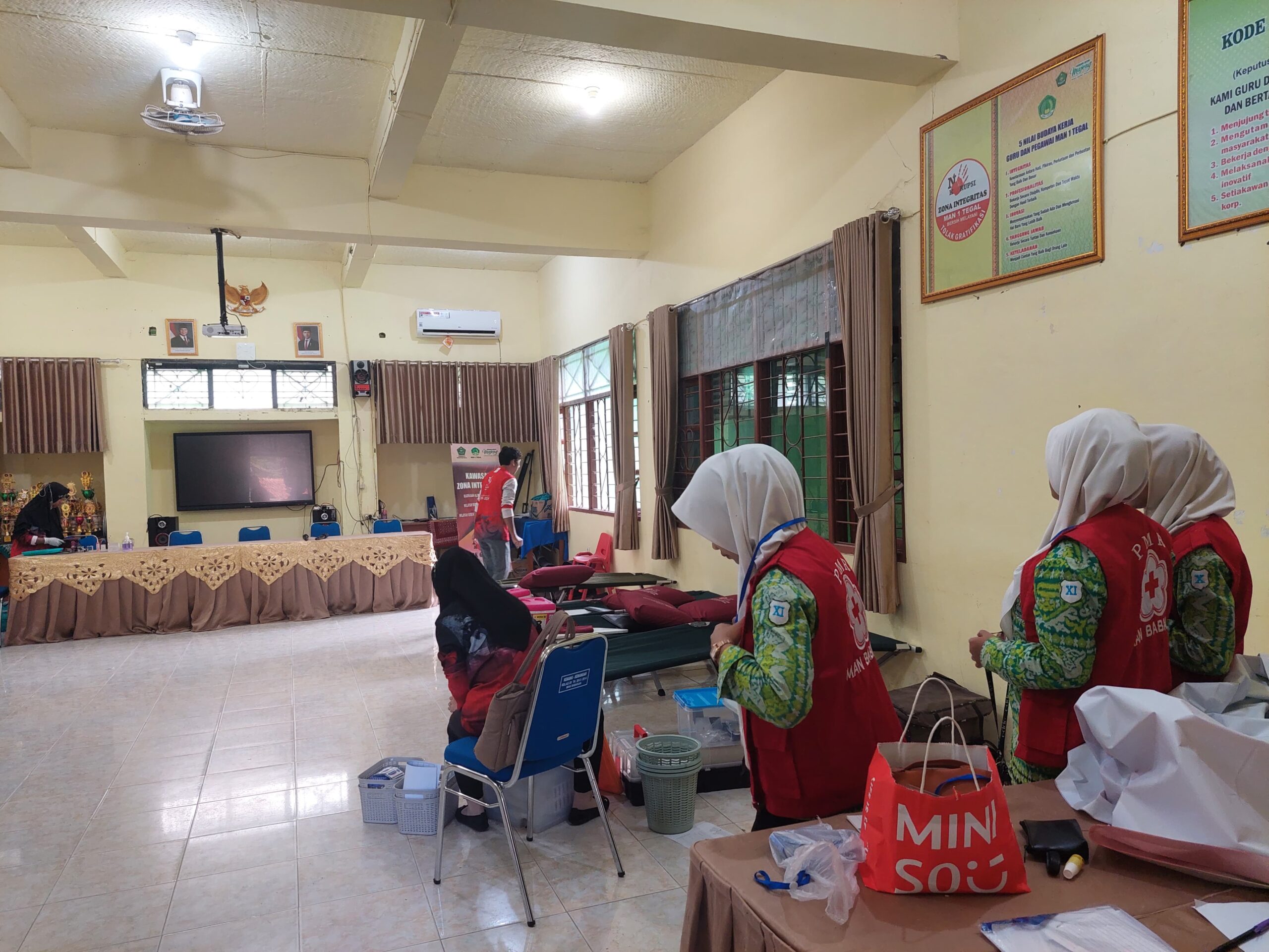 Donor darah sangat penting dilakukan untuk memperkuat sisi kemanusian. Di samping itu dapat menumbuhkan rasa kebersamaan sebagai manusia dan mencukupi kesediaan stok darah PMI. Hal itu disampaikan oleh Kepala MAN 1 Tegal, H. Imam Shofwan di Ruang Kamad saat berlangsung Kegiatan Donor Darah kerjasama ekstrakurikuler PMR WIRA MAN 1 Tegal dengan PMI kabupaten Tegal, Sabtu (15/2).