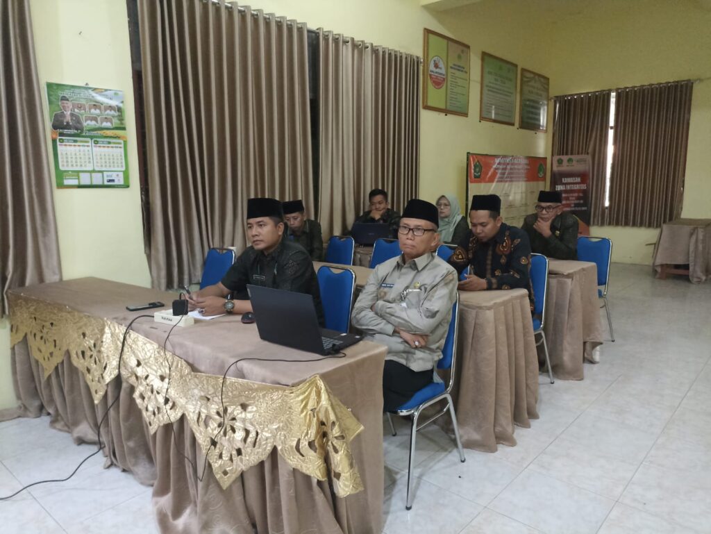 Slawi – Madrasah Aliyah Negeri (MAN) 1 Tegal rapat koordinasi persiapan evaluasi pembangunan zona integritas pada Kementerian Agama tahap II pembangunan Zona Integritas menuju predikat Wilayah Bebas dari Korupsi (WBK) dan Wilayah Birokrasi Bersih dan Melayani (WBBM). Rapat koordinasi ini di selenggarakan oleh Inspektorat Jenderal Kemenag RI, via zoom yang bertempat di Ruang PKKM, Kamis (3/10).
