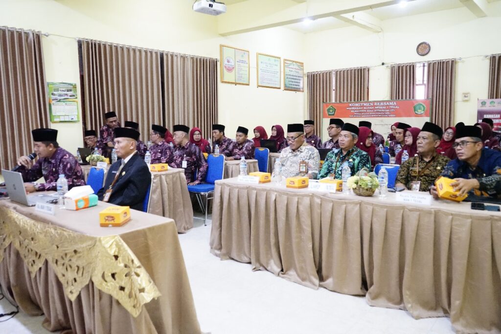 Pemaparan hasil pembangunan Zona Integritas disampaikan langsung oleh Kepala MAN 1 Tegal, H. Imam Shofwan, didampingi oleh Ketua Tim ZI, Tolchah Kais, seluruh wakil kepala madrasah, dan tim kerja ZI.