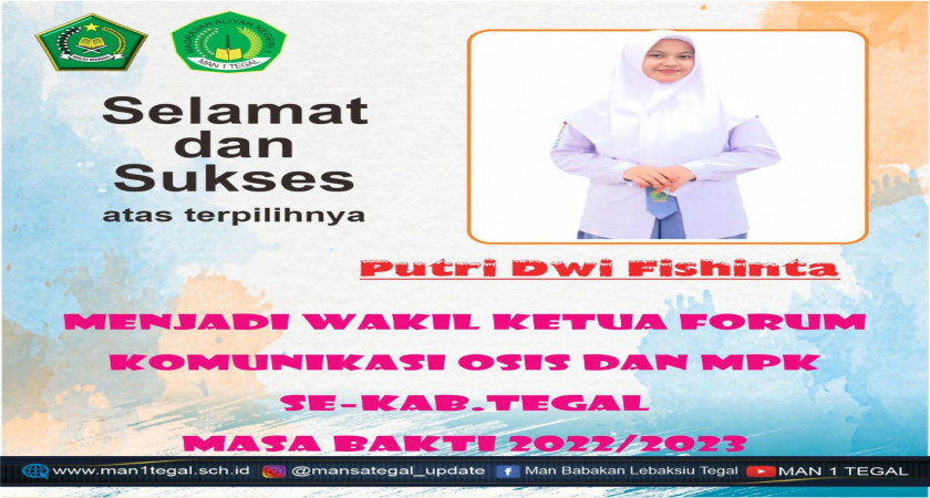 Putri Dwi Siswi MAN 1 Tegal Terpilih menjadi Wakil Ketua Forum Komunikasi OSIS dan MPK Se-Kabupaten Tegal 2022